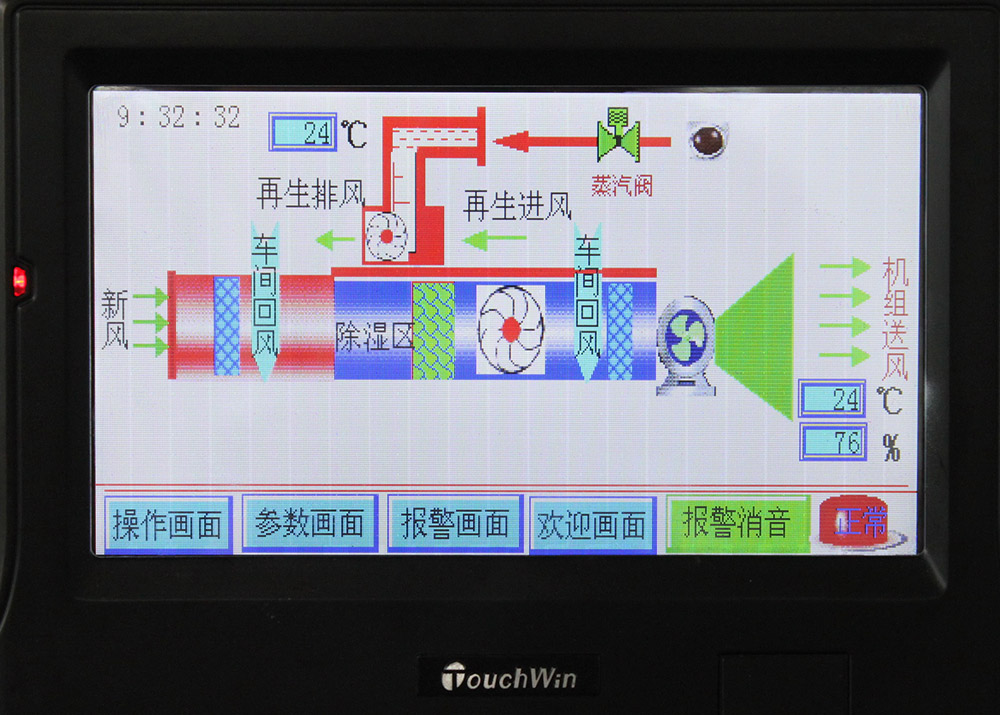 —臺好的設備,必須要有好的控制系統,人性化的智能設計、的系統控制,除了滿足必須的工藝生產要求外,生 產操作上的便捷也是一件令人愉快的事。無錫博靚特空氣處理設備有限公司一貫秉承“精益求精,以人為本“的設計理 念,選用全世界的自控元器件,精心設計的全方位控制流程,便捷清爽的操縱管理模式,構建出一臺高效智能的除濕 設備。